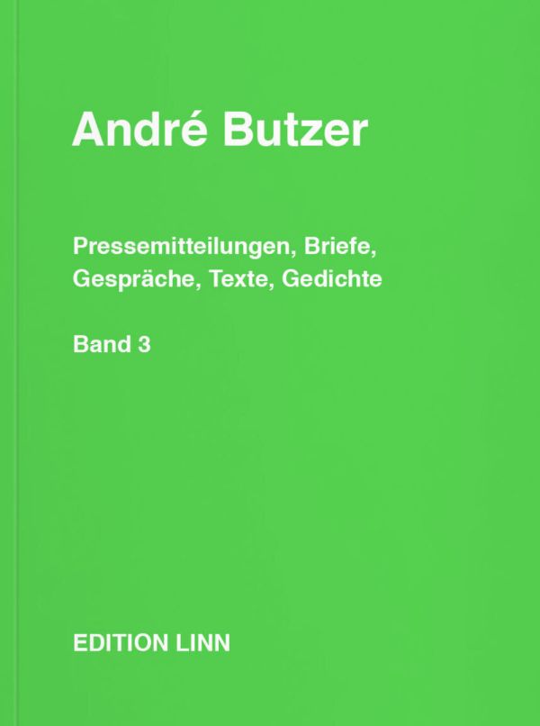 All good things come in threes and so do André Butzer’s collected writings. The third volume is elegantly sharp and poignant. Editor Alexander Linn continues to explore the unique fictitious universe, Butzer calls »NASAHEIM«. Boldly touching on the latter’s own work and biography, art history as well as music in numerous letters, in-depth conversations and poems. Guided by the simple question: What is real?, Butzer searches for »the actual location of painting, the space in-between. It’s a very esoteric but easy to understand conception of truth.«