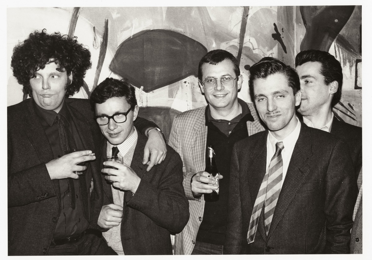 Werner Büttner, Martin Kippenberger, Albert Oehlen, Max Hetzler, Zadik, Cologne, 1983. Photo: Franz Fischer (left to right)