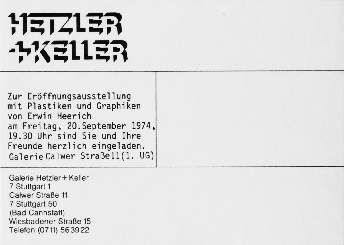 Everything began in Stuttgart in 1974 when Max Hetzler opened the Hetzler + Keller gallery, inaugurating his programme with artists from the Rhineland and Stuttgart. The gallery moved frequently – simultaneously or successively occupying several premises. Soon, Hetzler began to bring European and then international artists to Stuttgart, among them Donald Judd and Richard Long, as well as Arte Povera.