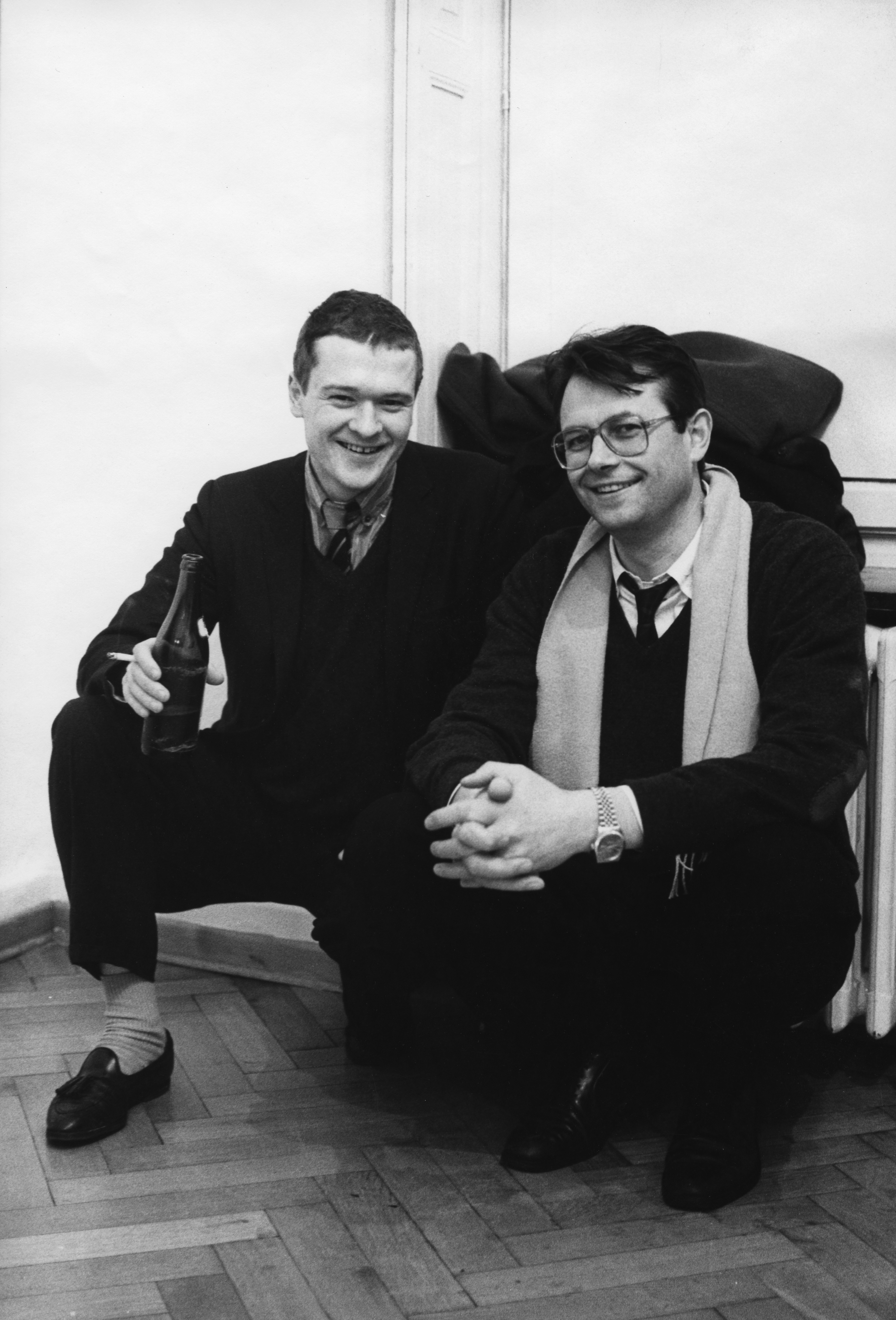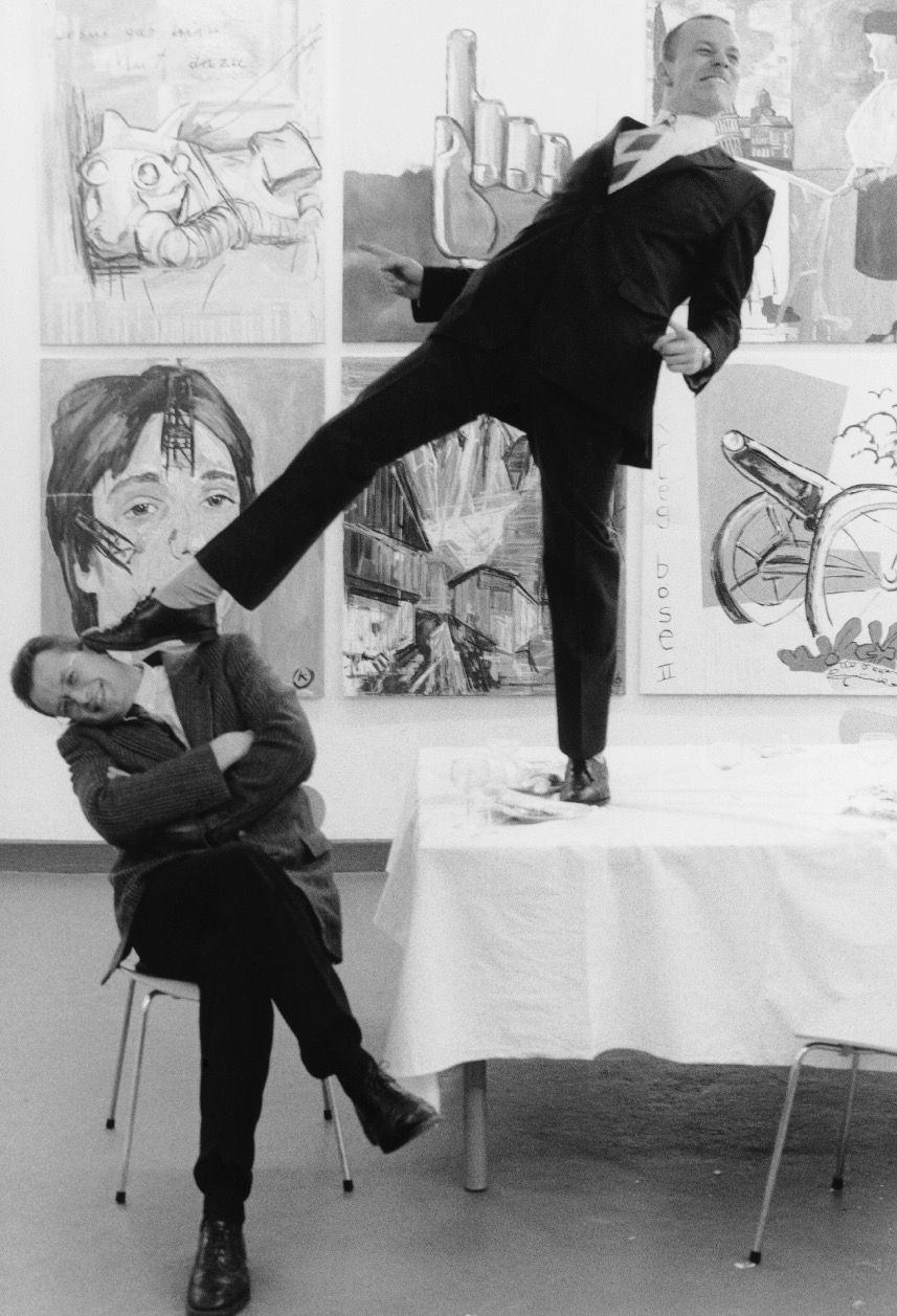 Max Hetzler (l.) and Martin Kippenberger (r.), Galerie Max Hetzler, Schwarbstraße, Cologne, 1983. Photo: Wilhelm Schürmann
